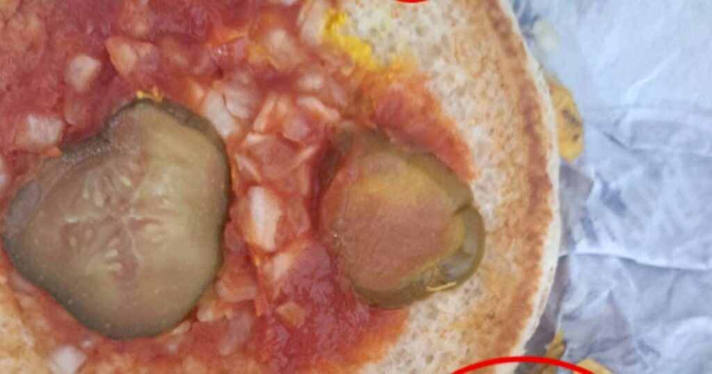 Den brittiska kvinnan öppnade burgaren och blev chockad när hon såg vad som fanns därinne.
