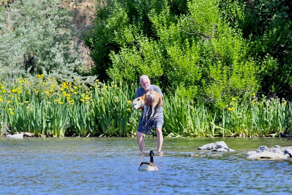 I somras var det en speciell bildserie som fick stor uppmärksamhet på Facebook. Bilderna visar en man som vill kyla ner sin hund i sommarvärmen. Men hunden har också ett tillstånd som gör vattnet extra bekvämt för henne. Hon kan inte använda sina bakben, förutom i vatten.