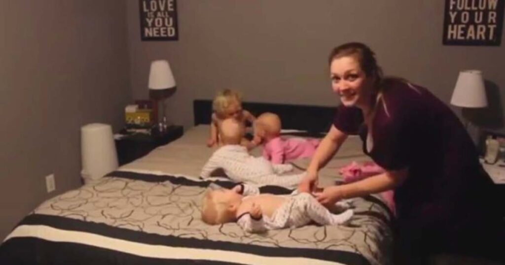 För några år sedan filmade hon och hennes pojkvän Dan Gibson kvällsritualen där mamma ska försöka göra gänget redo för sängen.