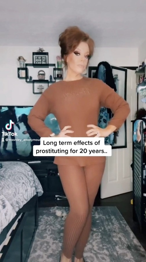 Ashley Clark Huffman, som går under namnet @trashley_anonymous på TikTok, har delat videor där hon berättar om sitt förflutna som sexarbetare. Flera av dessa videor har gått ut i media under de senaste månaderna.