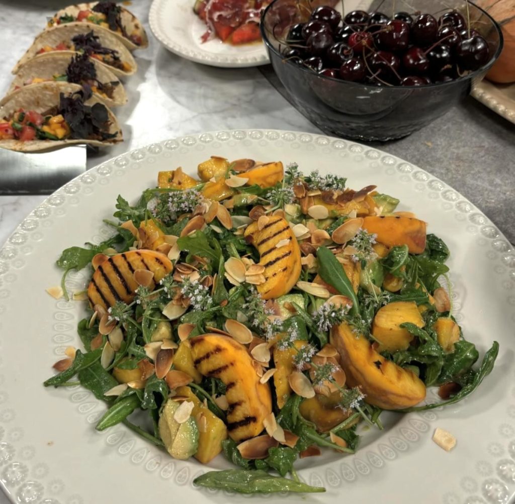 Trots sin initiala skepsis fick Jenny Alversjö snart ändra uppfattning när Erik Videgård presenterade sina rätter. Menyn inkluderade bland annat grillad vattenmelon och en sallad med persika och avokado.