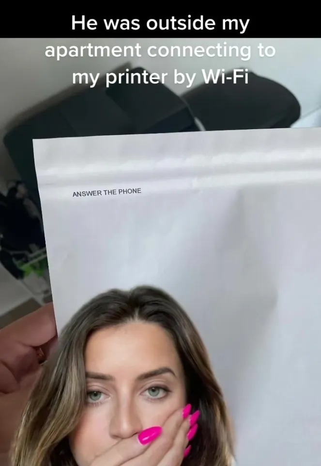 ”Han stod utanför min lägenhet och anslöt till min skrivare via Wi-Fi,” delade Julia i videon.