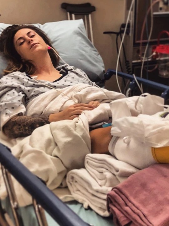 En ambulans tillkallades och förde den rädda mamman till sjukhus. Efter att ha genomgått tester och röntgen fick hon diagnosen kompartmentsyndrom orsakat av att hon legat på fötter hela natten, vilket hade blockerat blodflödet.