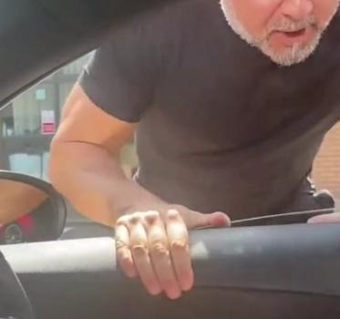 De närmaste minuterna visar hur den arga pappan ber den unga föraren av bilen att gå ut och be om ursäkt. Han säger bland annat: ”Kom igen kompis, gå ut. Det är min dotter […]!”