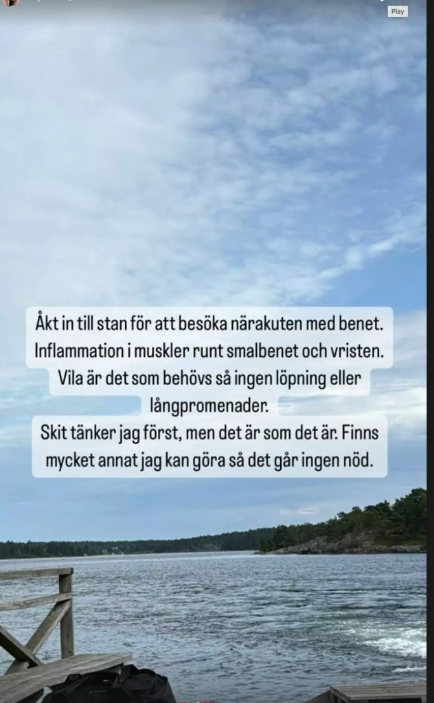 ”Åkt in till stan för att besöka närakuten med benet. Inflammation i muskler runt smalbenet och vristen. Vila är det som behövs så ingen löpning eller långpromenader,” skrev Kristin och fortsatte: