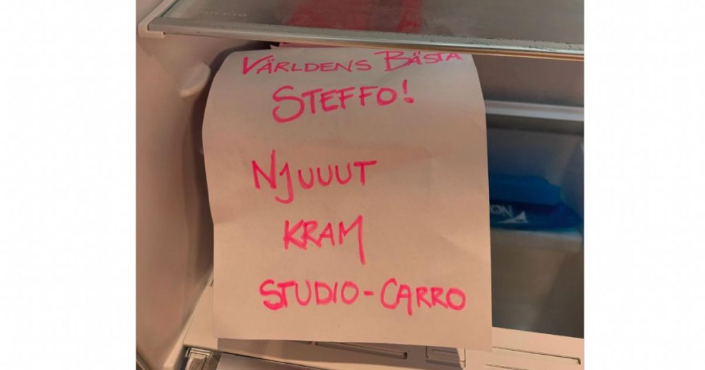 ”Jaha, så kommer man till jobbet i ottan och upptäcker att Studio-Carro är ledig och då blir man förbannad. Men. Sen öppnar man kylskåpet och upptäcker att hon förberett för korrekt halvåttaläsk och då blir man på gott humör igen✌️✌️”.