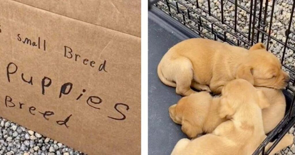 En kvinna och hennes man var ute och körde när de såg en bur med valpar vid sidan av vägen. Detta fick dem att vända bilen omedelbart.