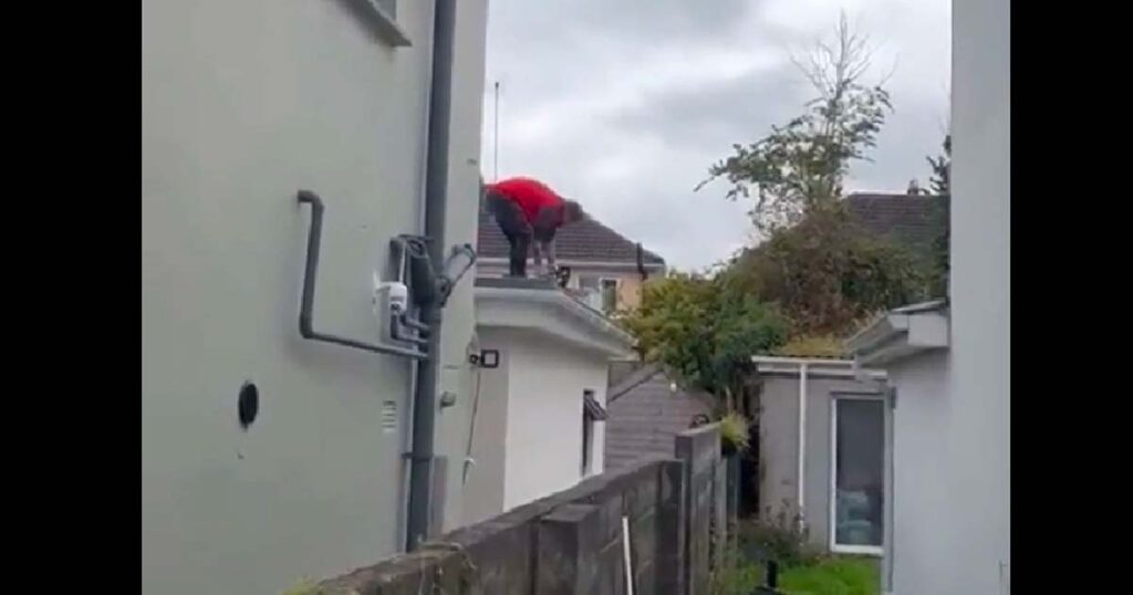 Iförd sin yrkesstolthet och beväpnad med en motorsåg bestämde han sig för att ta saken i egna händer. I en dramatisk gest som påminde om en scen ur en film, klättrade han upp på kundens tak och började demontera sitt eget verk och sprutade ut en ström av eder riktade mot den oärliga kunden: