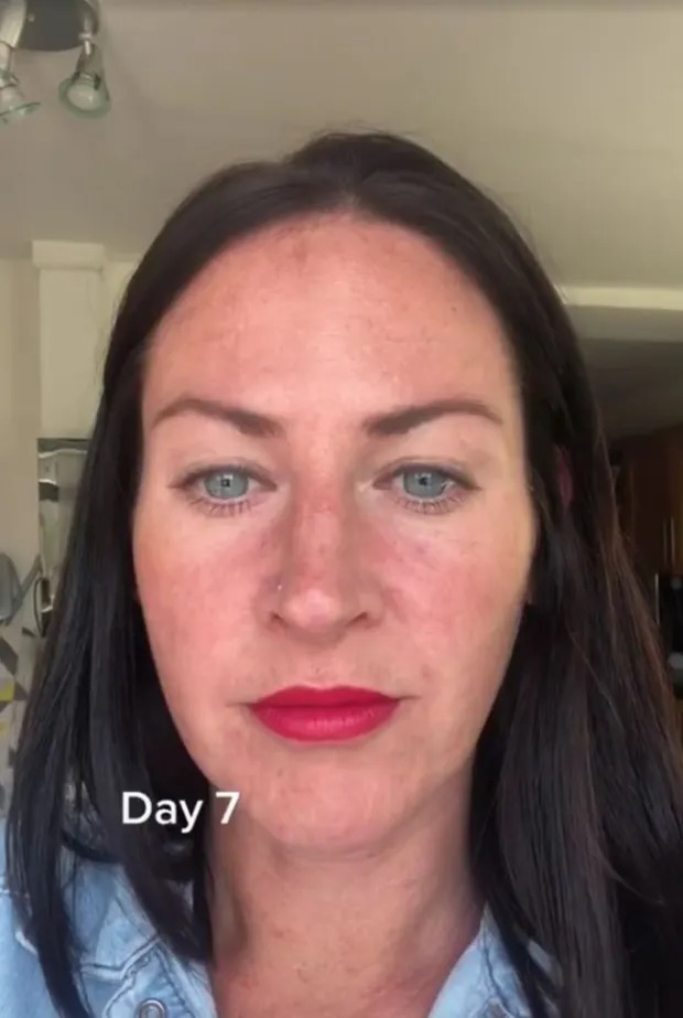 I videon kan du se hur rynkorna hon började med i ansiktet helt enkelt försvinner under loppet av åtta dagar.