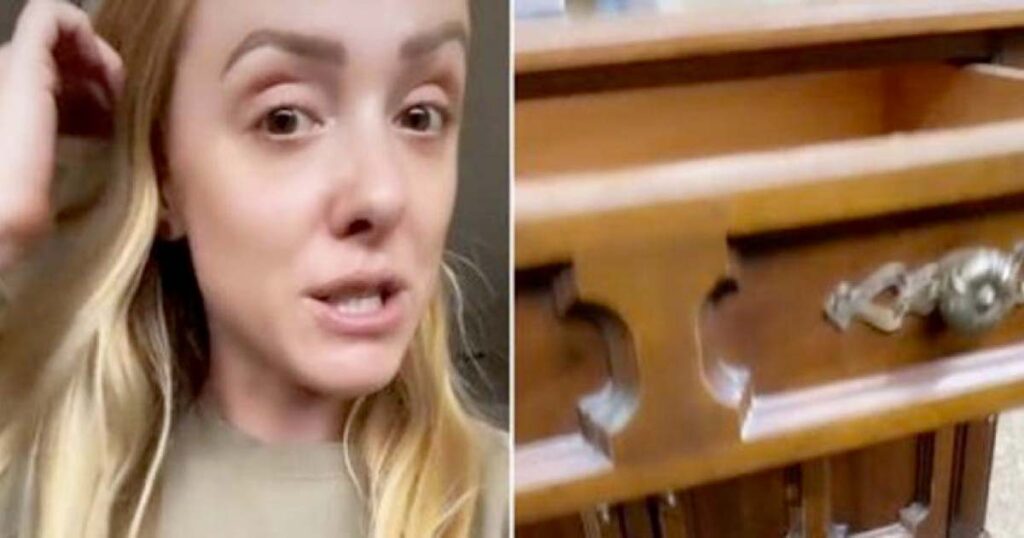 En kvinna köpte ett billigt nattduksbord i en secondhandbutik. När hon öppnade lådan på det nyinköpta bordet fick hon en rejäl överraskning!