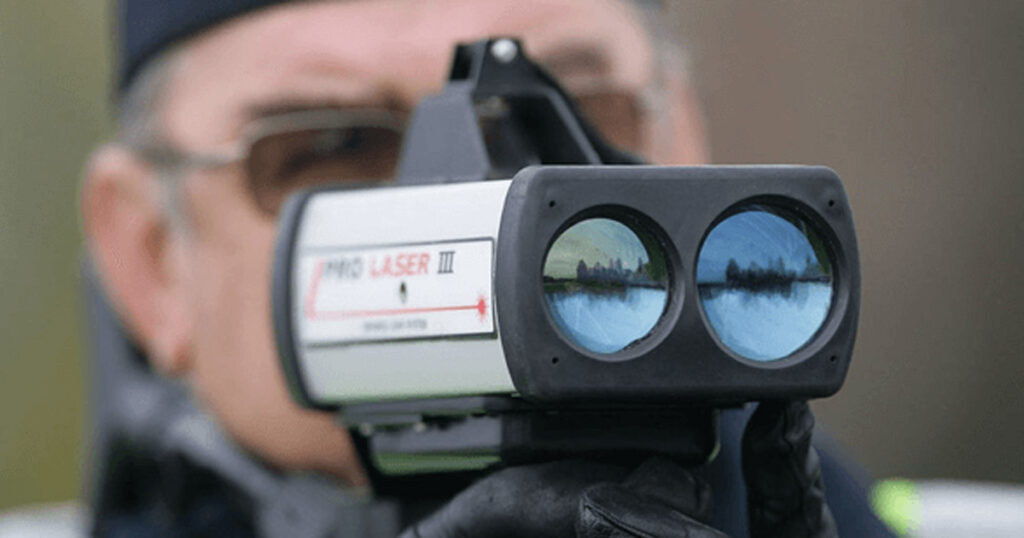 En kvinna i medelåldern kör alldeles för fort en dag. Plötsligt får hon syn på en polis som står och skjuter med laser men då är det försent. Han har redan hunnit skjuta med radarn och vinkar nu in henne. Hon hinner lagom bromsa så hon kan svänga in där han står.