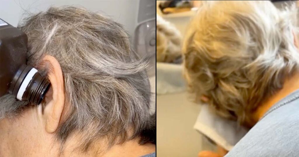 I videon ses kvinnans dotter hälla någon form av tvätt i mammans vänstra öra.