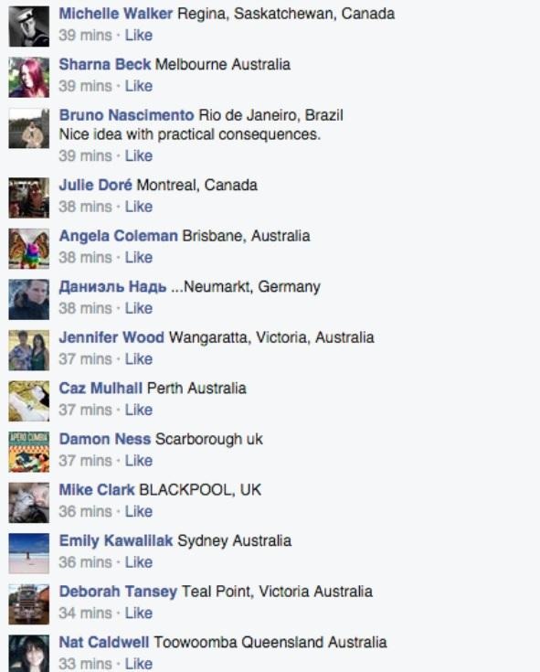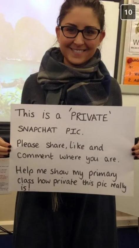 Hon tog därför en skärmdump av en bild från Snapchat och la upp den på Facebook, där hon bad folk att sprida bilden och skriva var i världen de befann sig när de såg bilden.