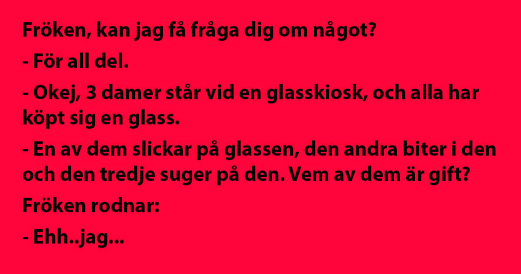 – En av dem slickar på glassen, den andra biter i den och den tredje suger på den. Vem av dem är gift?