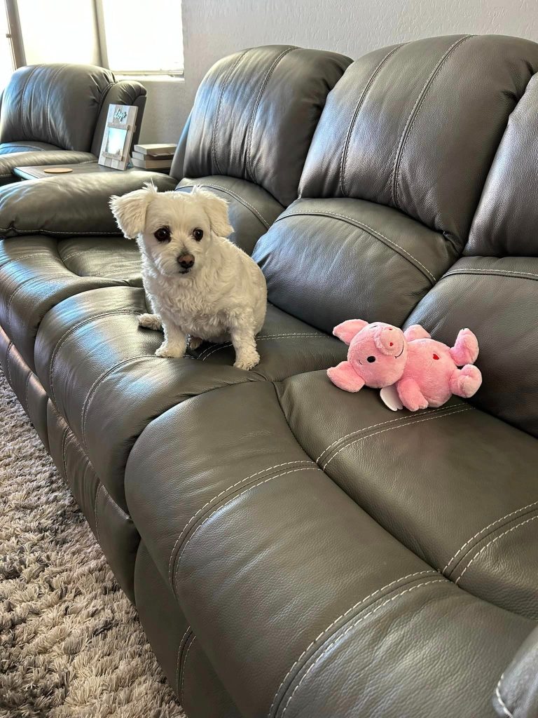 Chloe är en Maltipoo-Terrier-blandning, och hon var bara 9 månader gammal när hon hittades i en soptunna gnällande i en påse med sopor tillsammans med rutten mat, i Long Beach, Kalifornien, USA.