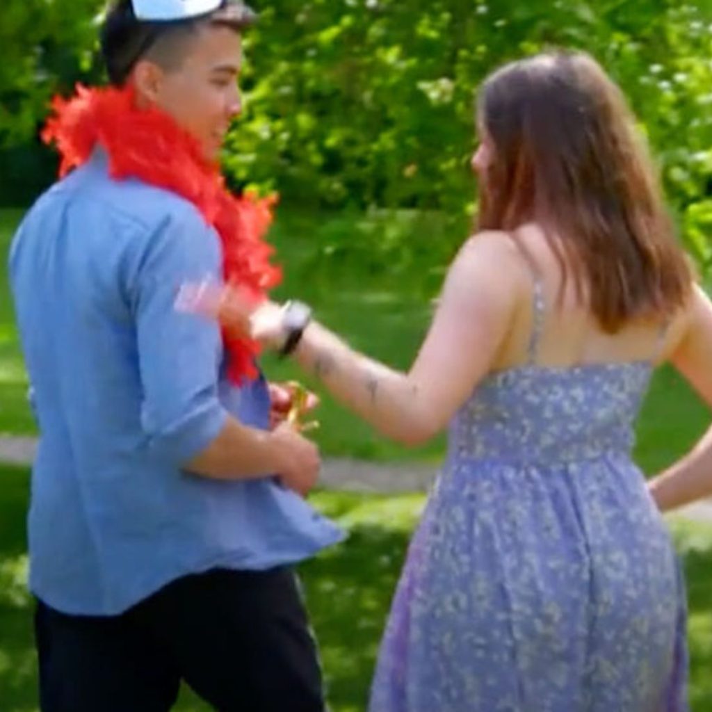 När gruppen sätter sig på en filt, ser Lukas till att placera sig så nära Alma som möjligt.