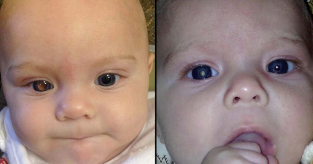 Hon hade precis tagit en bild på den lilla pojken med sin telefon, men av en slump hade hon satt på blixten. Det brukar ge en röd glimt i ögonen, men lilla Ashers ena öga var helt vitt.