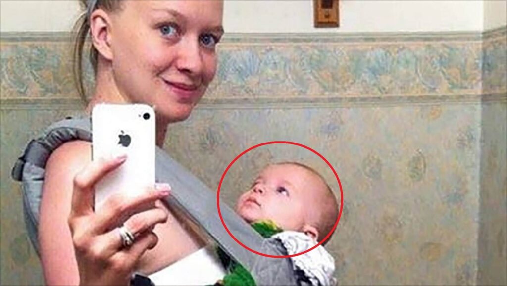 Mamman var i badrummet med sin lilla son och skulle ta en bild med honom i bärselen, det tråkiga är att tyvärr så vart det sista på dem på.