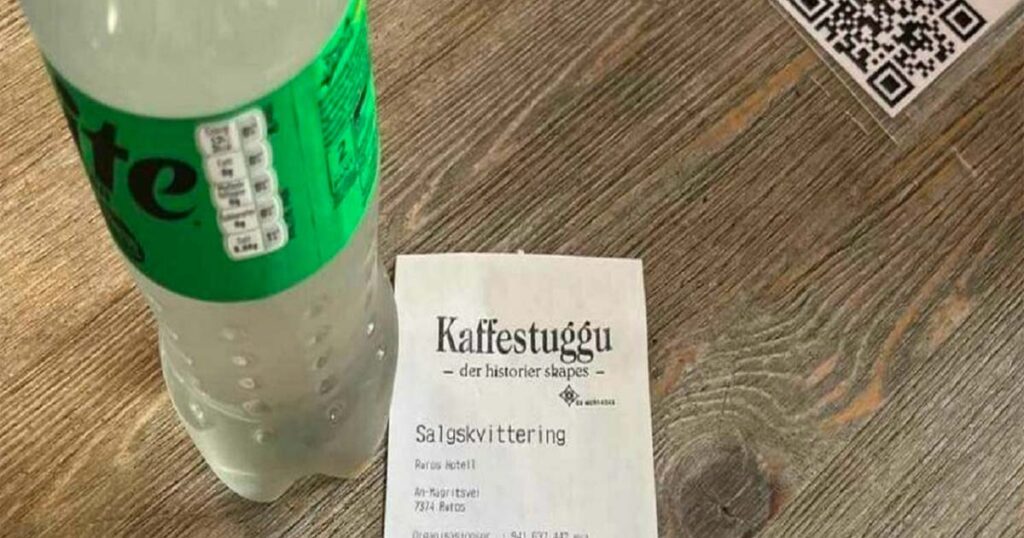 Røed la även upp en bild på kvittot på Facebook-gruppen ”Vad händer i Røros”. Där har han fått stöd från flera personer att sodavattnet har ett lite dyrt pris.