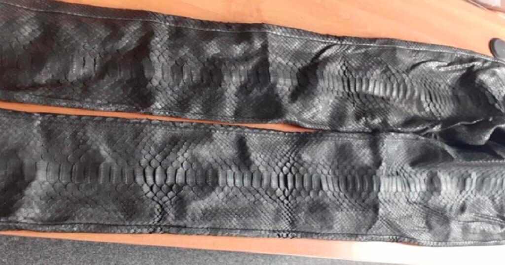 I beskrivningen skrev avsändaren att det fanns byxor inuti. Det var det, men den här var helt gjord av pythonskinn. Ormen är under artskydd.