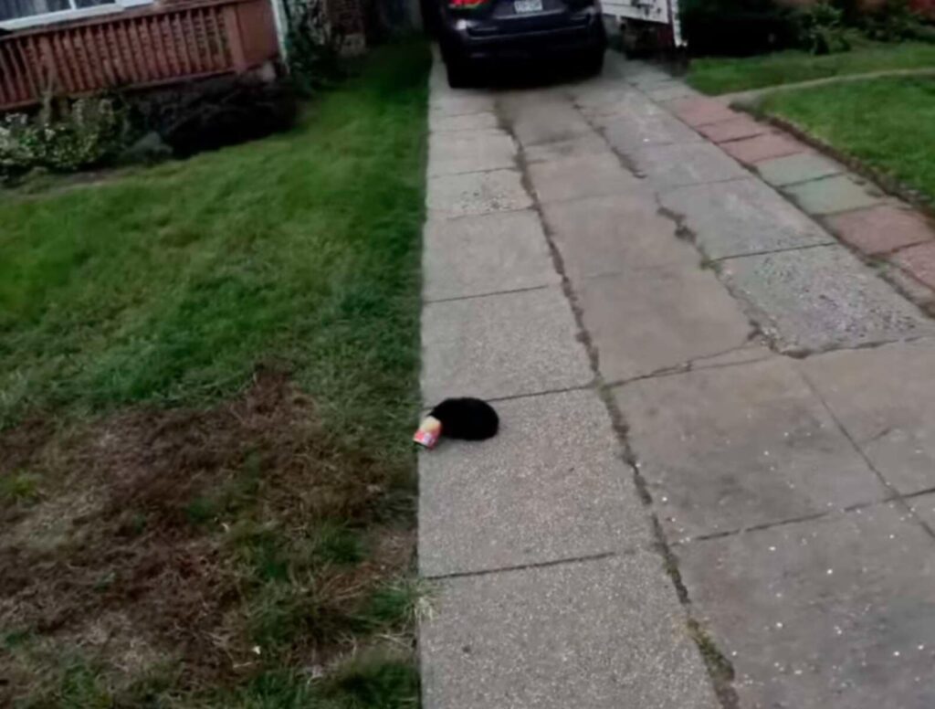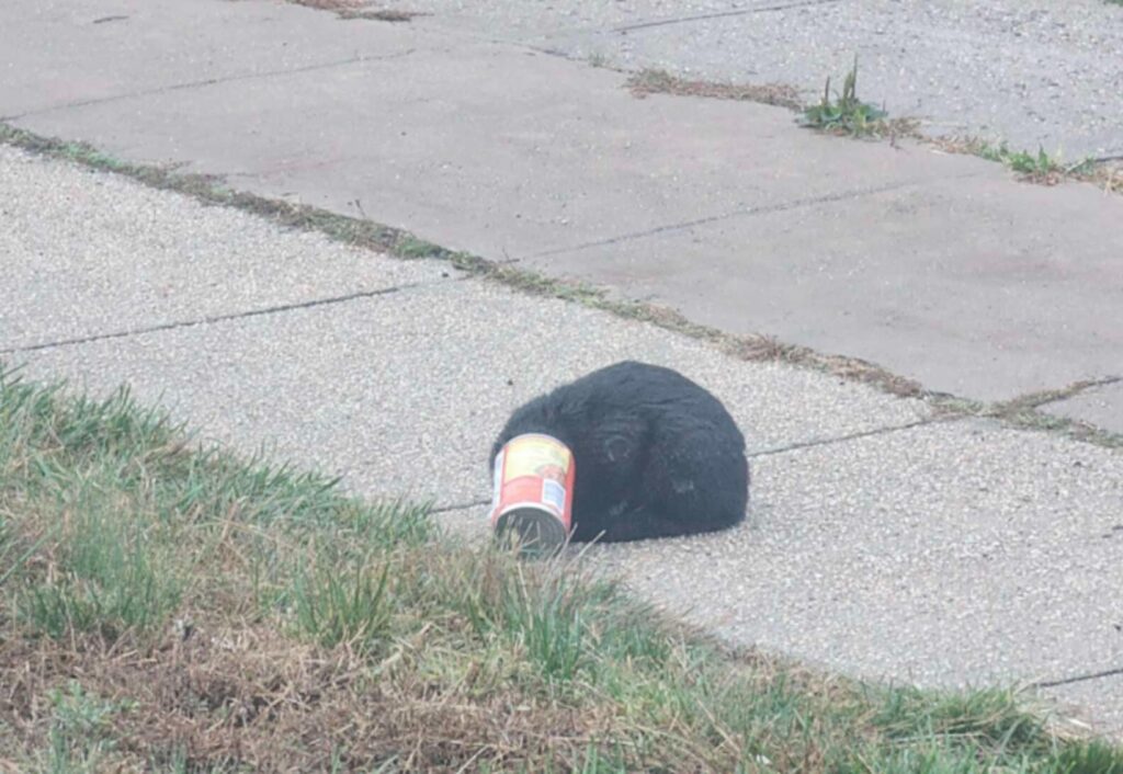 Det låg en liten, rörlig pälsboll på en trottoar med en burk fast vid den.