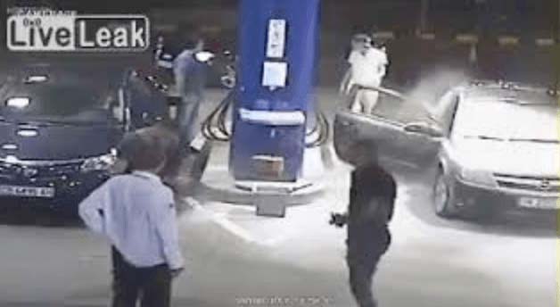 När en farlig person med en tänd cigarett dyker upp och som (förmodligen) inte skulle släcka den på begäran, bestämmer sig en av de anställda på macken för att ta saken i egna händer och bokstavligen sprejade ner killen med en brandsläckare!