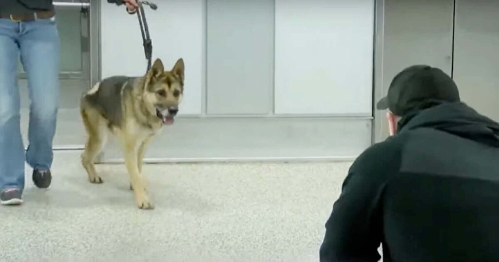 Där stod Enzo med svansen viftande och blicken fäst på sin älskade förare. Till sist förenades de igen i en famn som uttryckte glädje, tacksamhet och villkorslös kärlek.