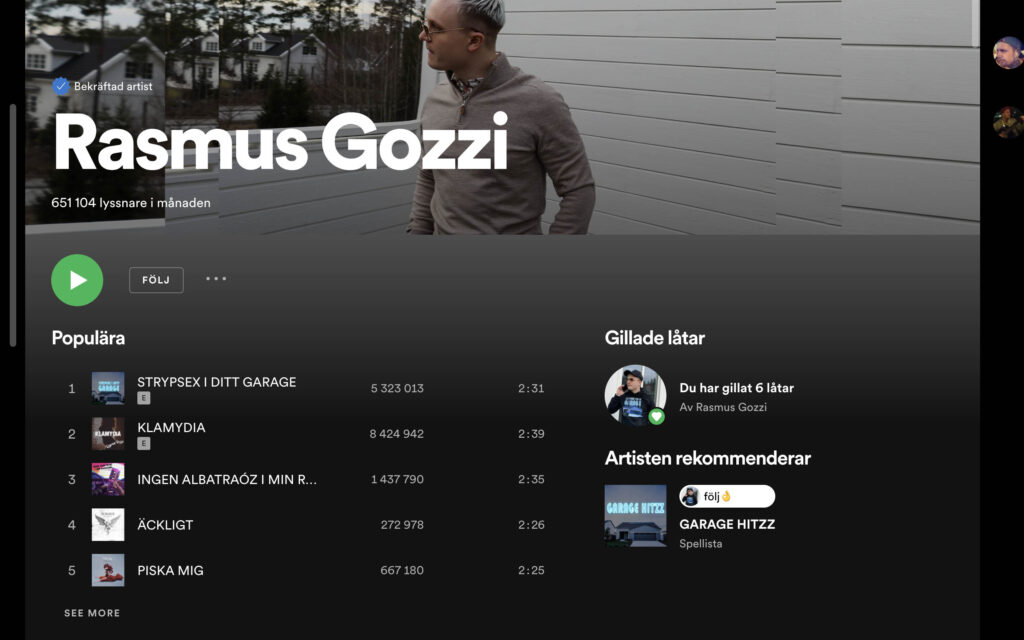 Nja, det skulle vi inte tro. Utifrån vad vi kunnat få fram så heter han Rasmus Gozzi, har över 650 000 lyssnare varje månad på Spotify och är en av Sveriges största artister.