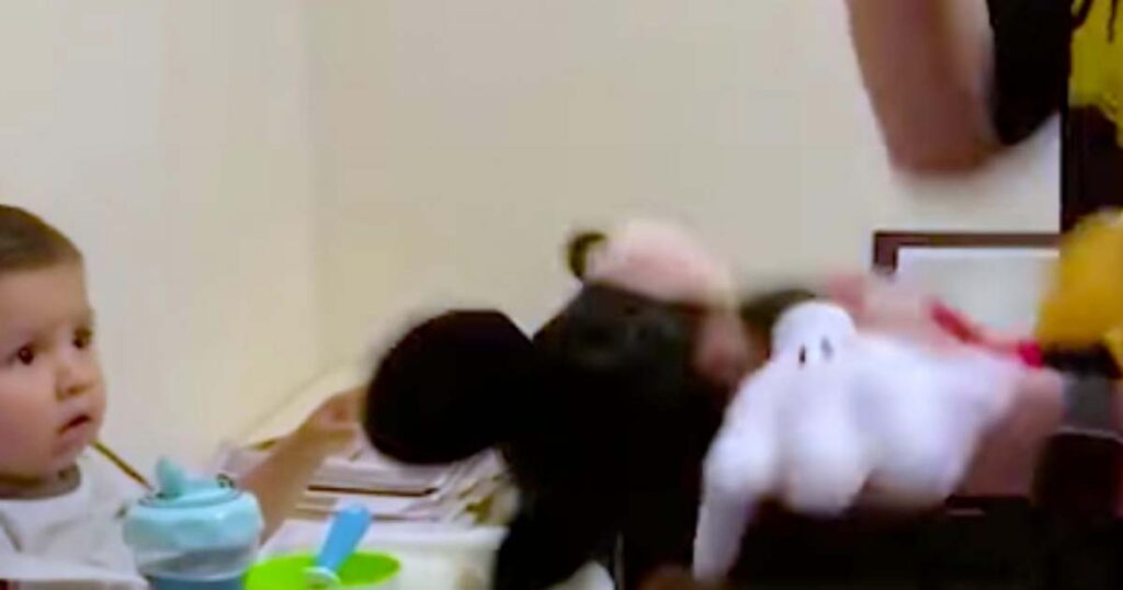 I videon kan du se hur pappan använder våld mot barnets nalle som en metod för att få barnet att äta sin mat.