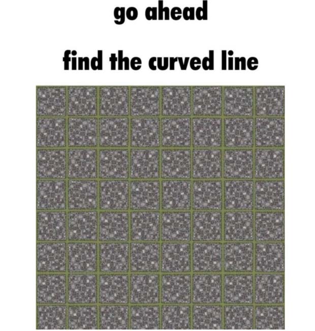 Läsarna utmanas att peka ut de böjda linjerna i bilden, en uppgift som är mycket svårare än den låter.