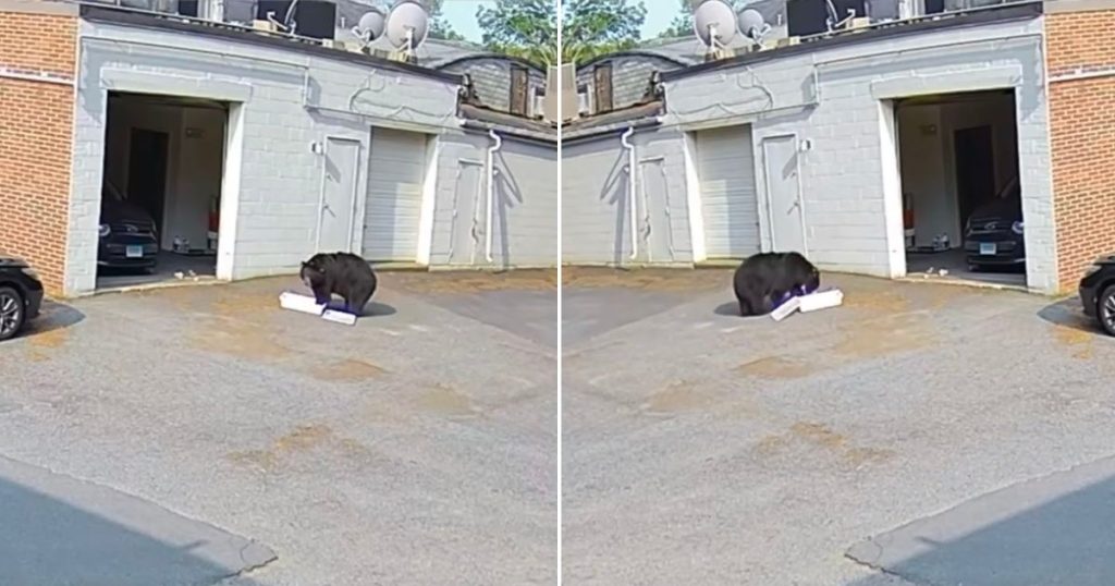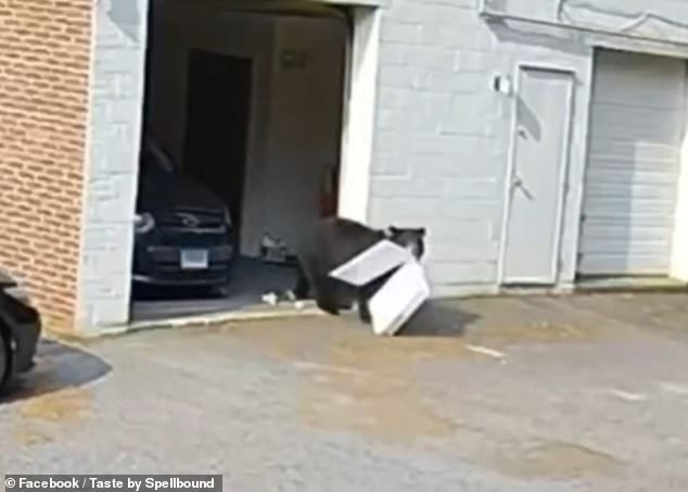 Björnen var också lugn: på videoinspelningen ser vi att björnen inte ville sitta i det trånga, mörka garaget och njuta av sin tårtfångst. Nej, den släpade lådan med muffins ut på den soliga parkeringen där den stod och njöt av kakorna. Vi ser också att de anställda upprepade gånger försökte skrämma bort honom.