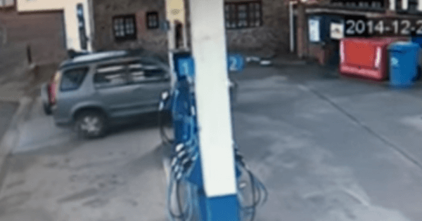 Den här kvinnan har stannat på macken för att tanka. Jag är säker på att du också lyckats gjort det som den här kvinnan gör – hon har glömt vilken sida tanklocket sitter på.