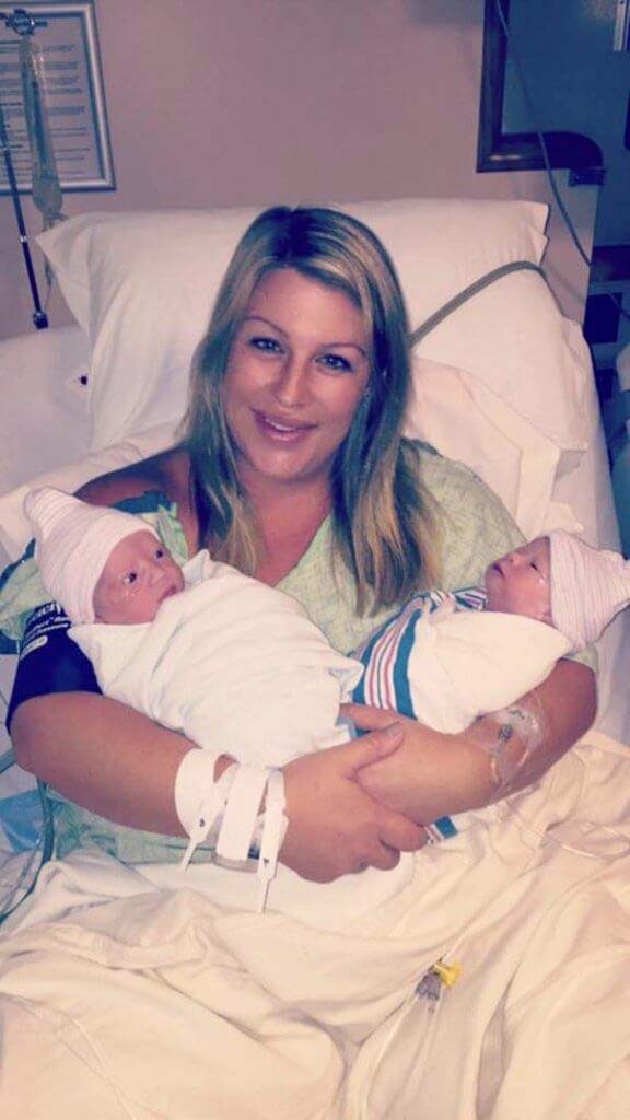 Det här var en känslig berg-och-dalbana för Courtney, men som tur var gick det bra med de två friska barnen. Båda föddes den 21 september och de var friska och snabba. Hon gav dem namnen, Miles och Harper.