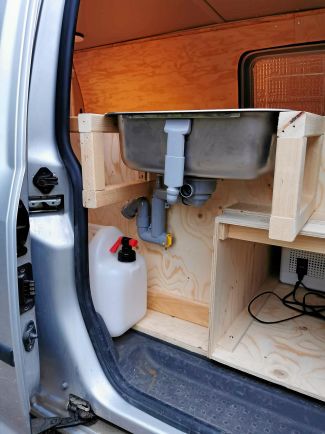 Bilen är utrustad med en diskho och plats för flera vattendunkar.