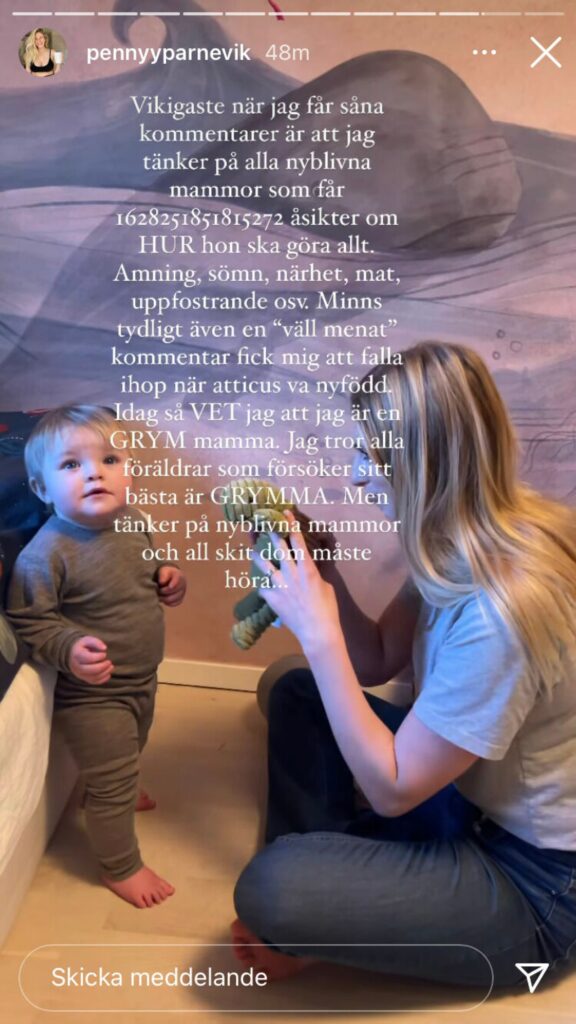 Penny Parneviks bild på 1-åriga dottern väcker starka reaktioner bland följarna. Många tror att det som är på bilden kan vara livsfarligt.