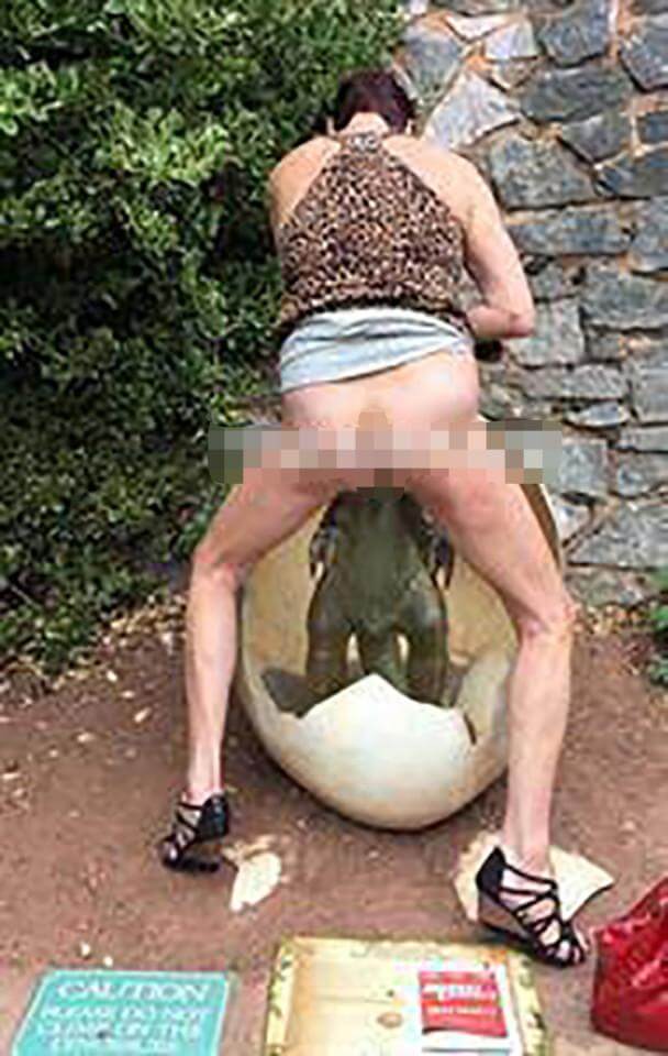 En rad bisarra bilder har dragit till sig rubriker i brittiske medier de senaste dagarna. På uppseendeväckande foton låter en kvinna sig tillfredsställas sexuellt av en dinosaurieskulptur på en lekplats.