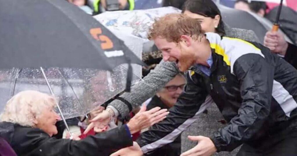 Prins Harry blev rörd av hennes berättelse och sa adjö till Daphne. Föga anade de då att deras vägar skulle korsas igen två år senare.