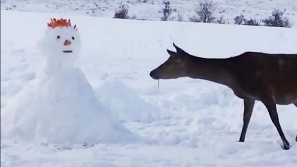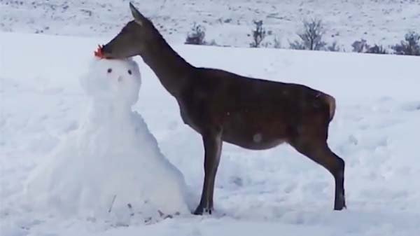 Under vinterns månader har rådjuren det tufft och är alltid på jakt efter lite extra mat. Oturligt nog för barnen hade deras snögubbe ett hår gjort av morötter, vilket rådjuret direkt fick syn på…