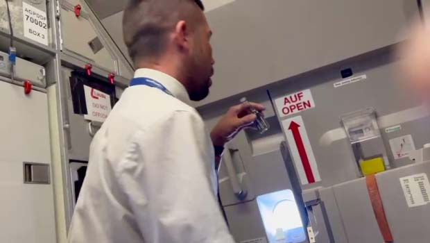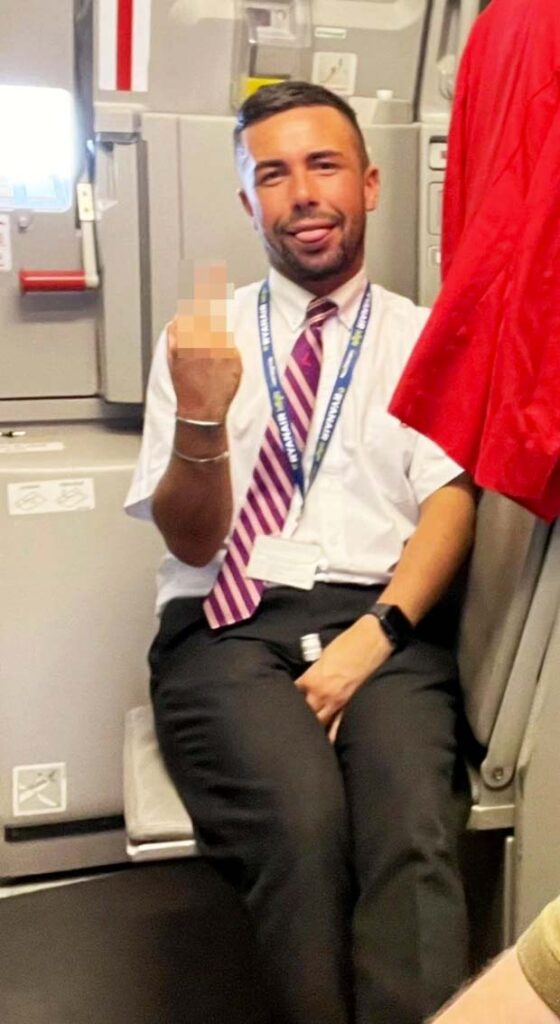 Videon på flygvärdens tvivelaktiga beteende under flygningen har delats flitigt på nätet – och nu fått honom sparkad.
