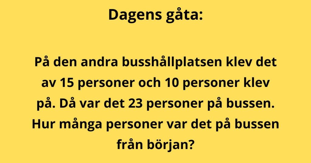 ”På den andra busshållplatsen klev 15 personer av och 10 personer klev på. Då var det 23 personer på bussen. Hur många personer var det på bussen från början?”