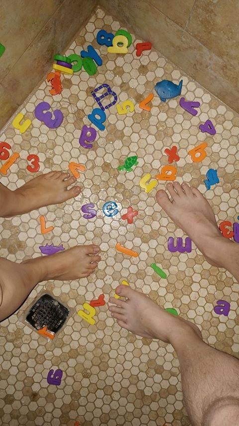 ”Vi gick tillsammans under den varma duschen, som snabbt tappade temperaturen eftersom mina barn hade använt allt varmvatten. Vi kysstes passionerat men trodde hela tiden att vi hörde våra barn ropa. Vi försökte fortsätta men hörde plötsligt ett högt; ’squeeeeeeeek’,” skriver Nicole Ramsey som visade sig ha trampat på ungarnas gummidelfin som släppte ett högt tjut.