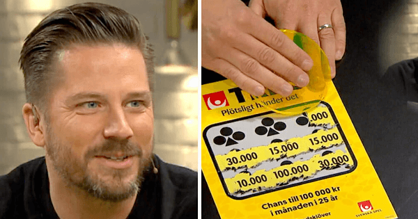 Först skrapade Christian den första lotten som talar om hur många år månadsvinsten ska komma in och det visade sig vara i hela 10 år. På den andra lotten skrapade han fram 15 000 kronor. Det innebär alltså att Christian och hans familj vann 15 000 kronor i månaden i 10 år, vilket sammanlagt blir en vinst på 1,8 miljonor kronor!