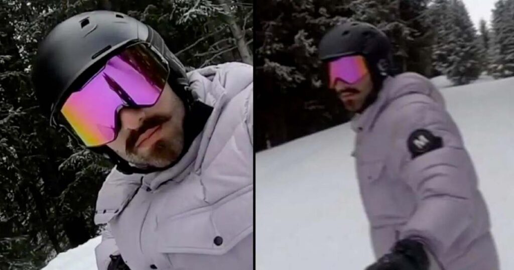 En snowboardåkare tittade på hans inspelningar från en tur i pisten. När han gjorde det upptäckte han att hans liv faktiskt hade varit i fara.