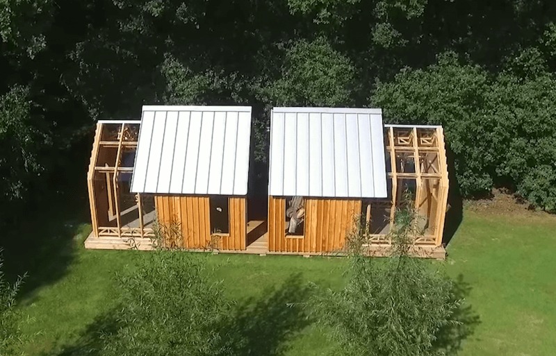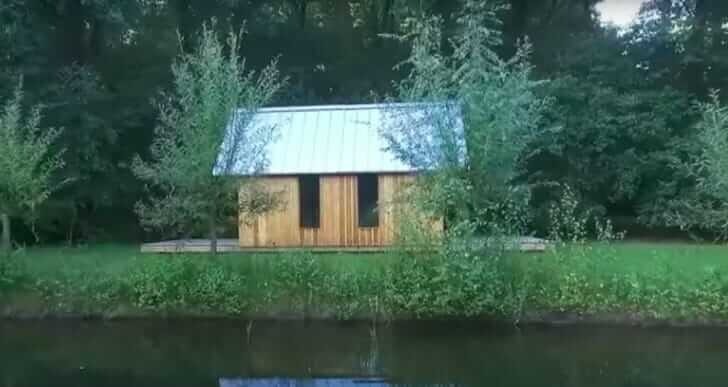 Det finns även en vedspis i stugan för lite kallare dagar. Sedan trycker du bara ihop väggarna och stänger glasväggarna.