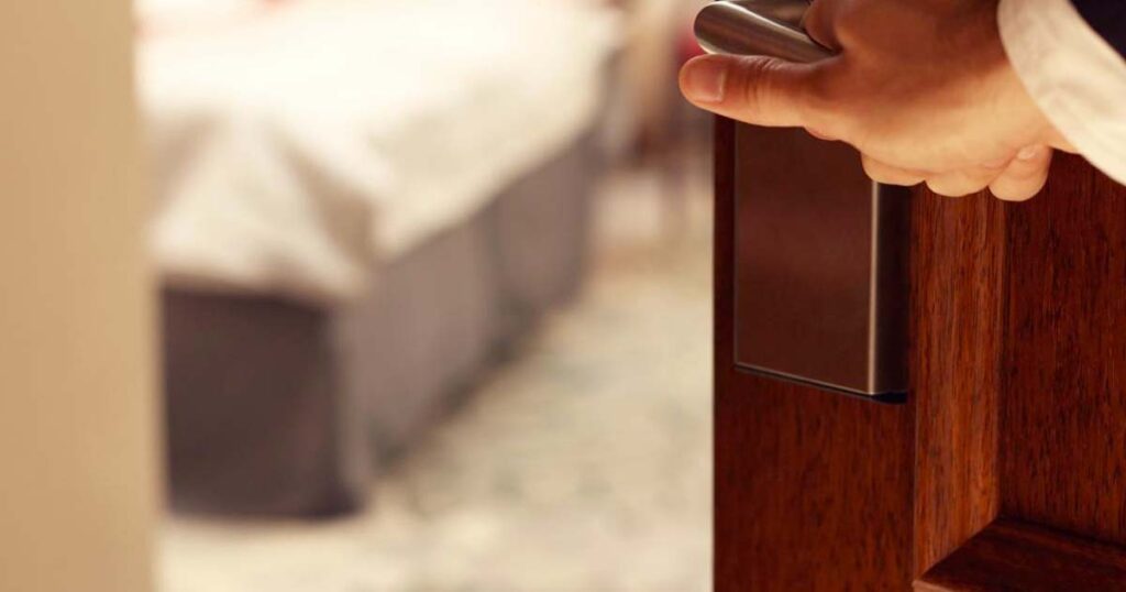 Hotelldörrar är ofta tunga och kräver en extra knuff innan de stängs helt.