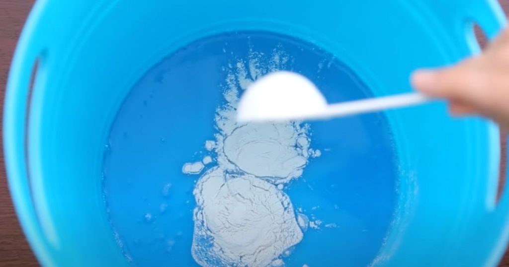 - Blanda diskmedlet i en hink och tillsätt guargummipulver och bakpulver. Rör om tills det är väl blandat.