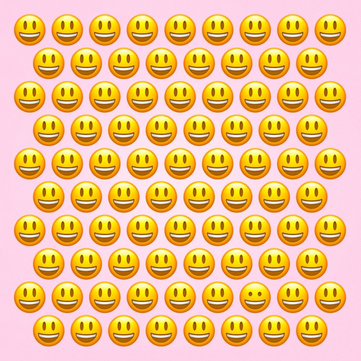 I den här bilden ser vi en mängd smileys som är uppradade. Någonstans bland dem gömmer sig dock ett ansikte som sticker ut från mängden. Lyckas du se vart den udda smileyn är?