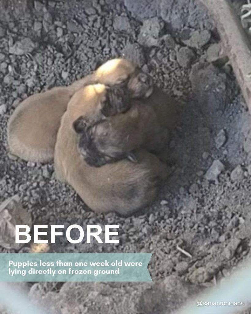 ”Tre valpar, mindre än en vecka gamla, låg direkt på den frusna marken”, skrev SAACS.
