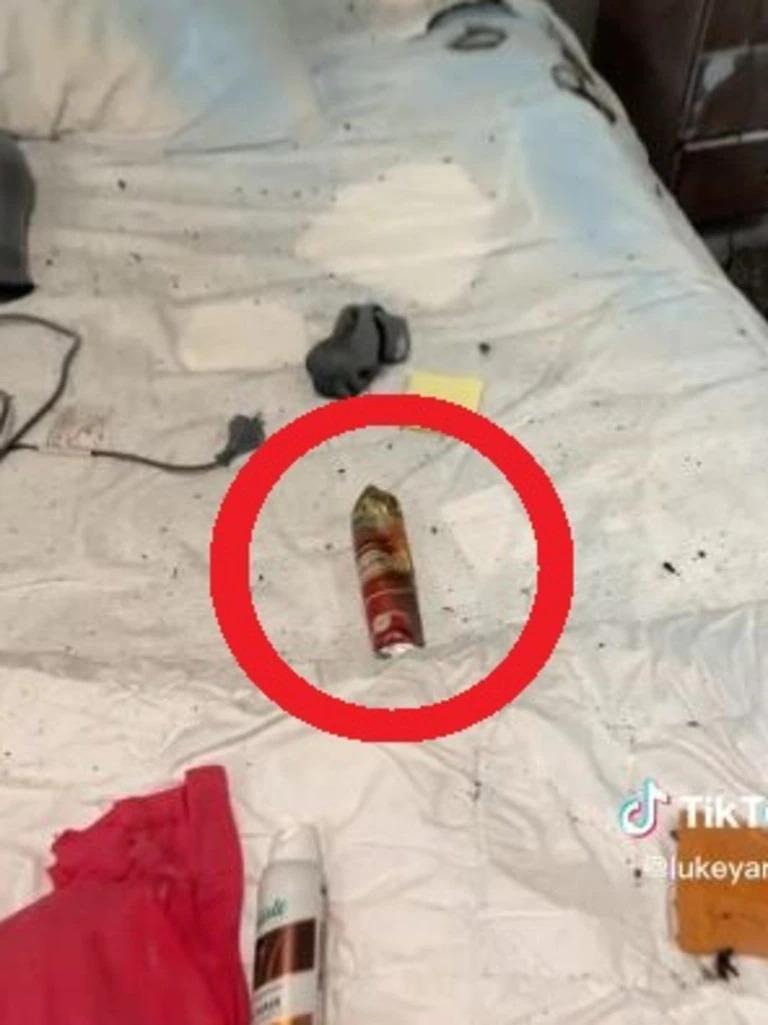 Luke, 28, har delat en video på TikTok där han hävdar att ett torrschampo plötsligt ”exploderade” i hans mammas handväska och utlöste en brand som orsakade betydande skador i hennes sovrum.