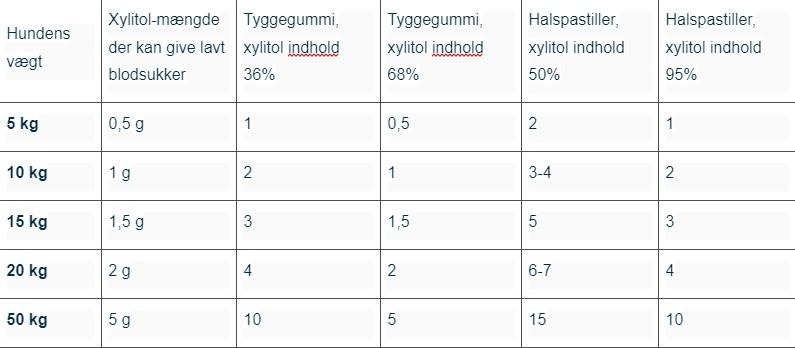 Som med allt annat är det stor skillnad från hund till hund, som är speciellt differentierad utifrån hundens vikt. I tabellen nedan kan du se hur mycket xylitol din hund tål:
